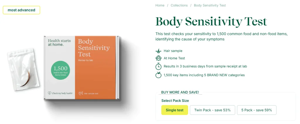 Check My Body Health sits firmly in the direct-to-consumer wellness testing space. You buy your test online, send a sample in by post, and receive a digital report that lists your “sensitivities”.